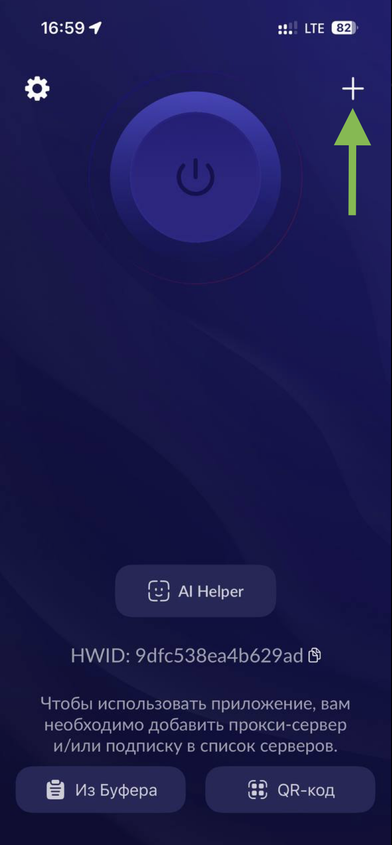 Вы успешно вставили ключ. Нажмите на синюю кнопку в центре, чтобы включить VPN. После подключения кнопка подсветится. Чтобы отключить VPN — нажмите на кнопку в центре еще раз