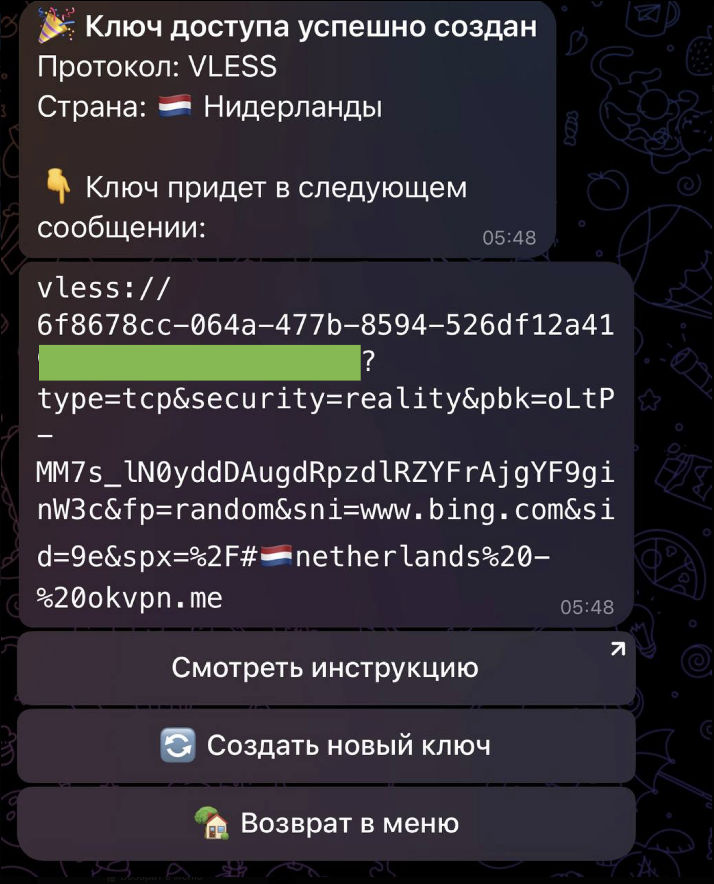 - Нажмите на кнопку «🔑 Получить ключ доступа»